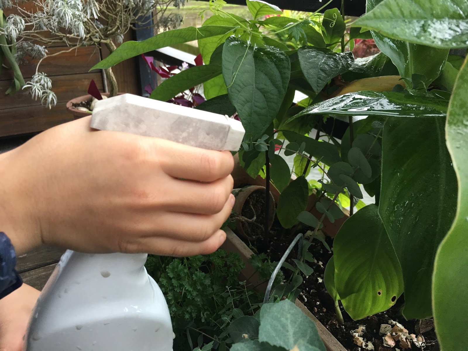 - 以薄霧狀噴灑在植物葉片、莖、靠近根部。